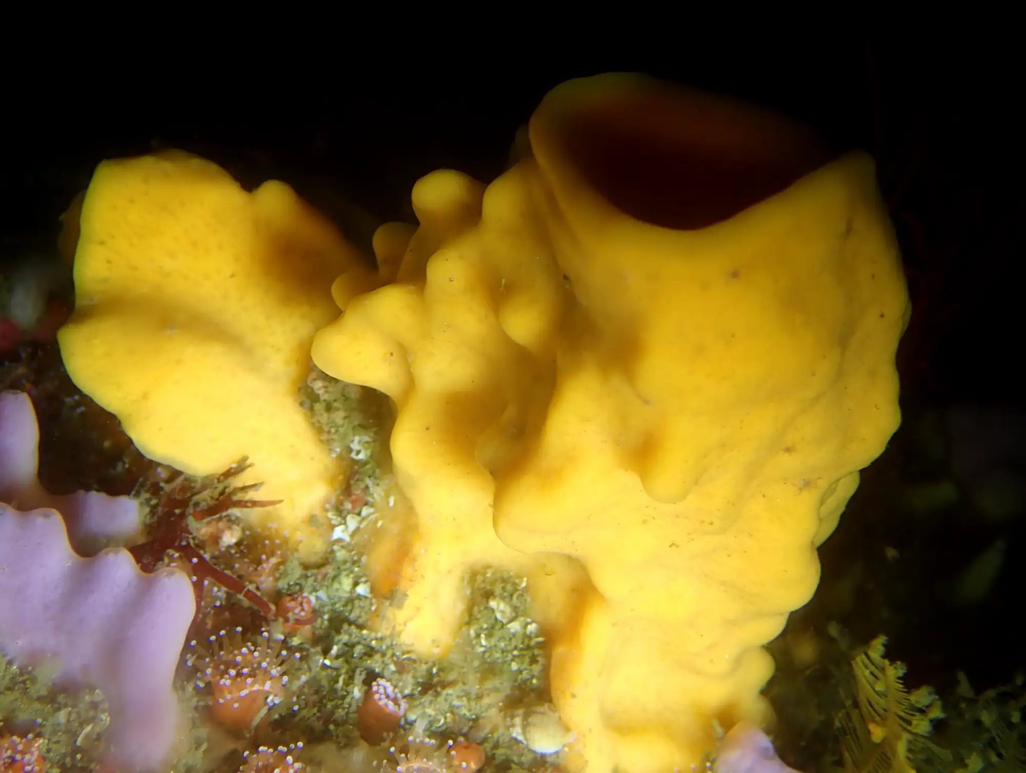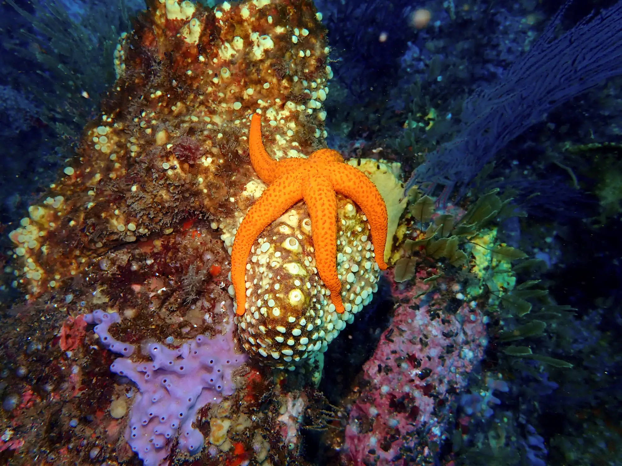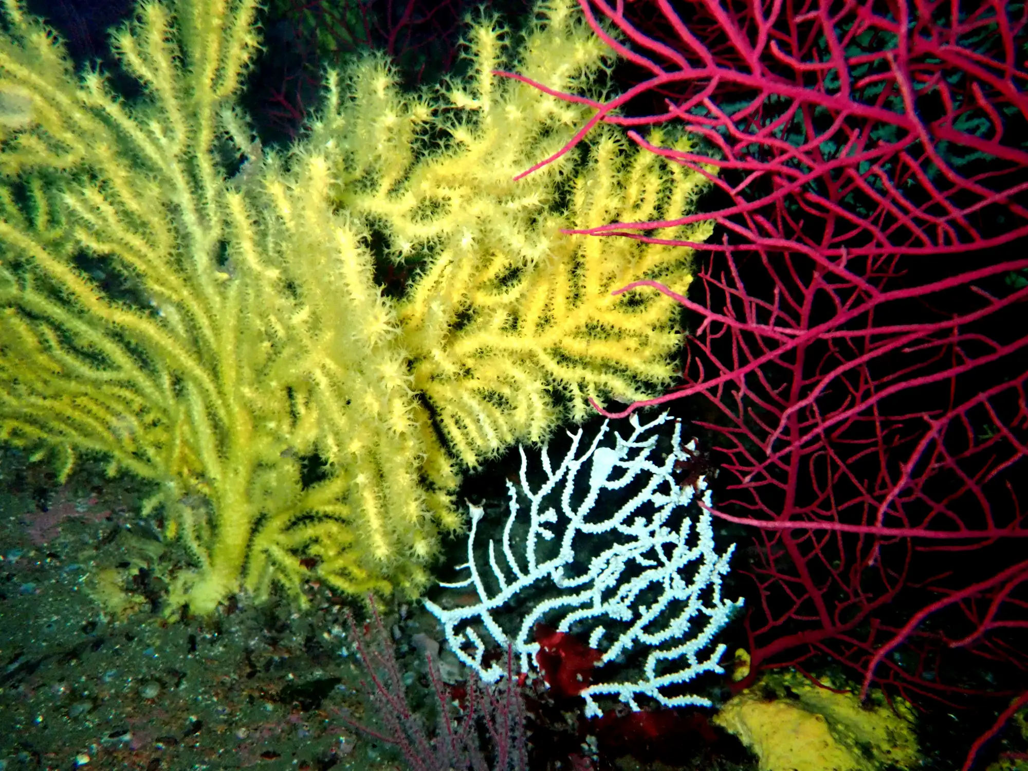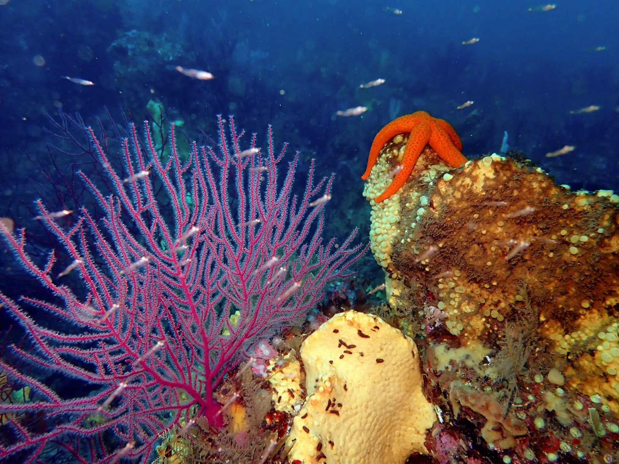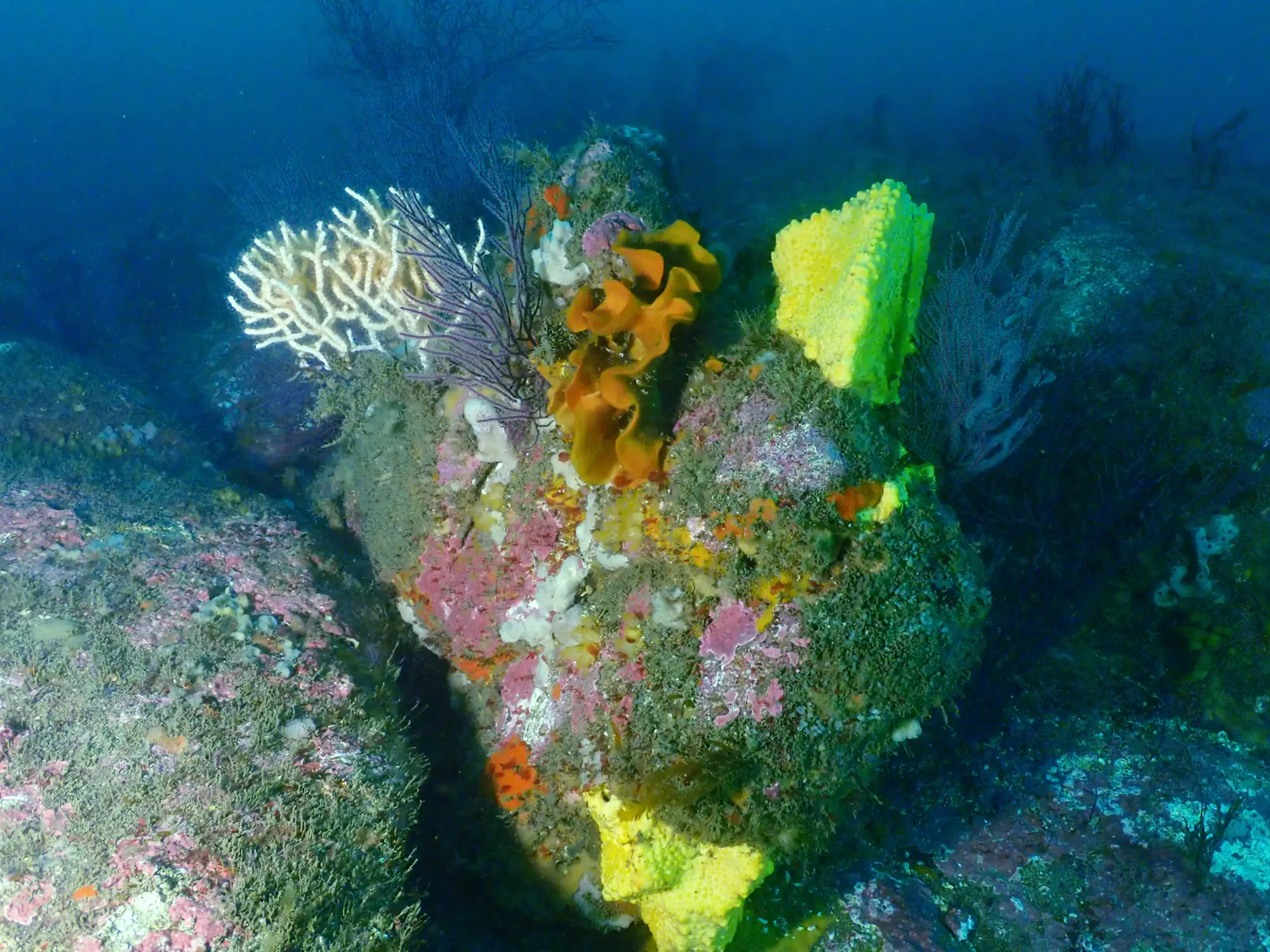 A maioría das veces mergullamos en fondos con pouca profundidade, xa que as características das augas galegas (a gran riqueza de nutrientes debido aos afloramentos reduce a visibilidade e a cantidade de luz que chega a cotas máis profundas) fan que nos primeiros 20 metros se concentre gran parte da vida mariña. Pero cando decidimos adentrarnos algo máis alá e superamos os 20-25 metros de profundidade, as paisaxes cambian por completo. As algas, omnipresentes cando estamos a menor profundidade, deixan paso a formas de vida animal que recobren as rochas. É o reino das esponxas, gorgonias, anemones, briozoos... que amosan formas e cores que só podemos atopar nestas cotas.