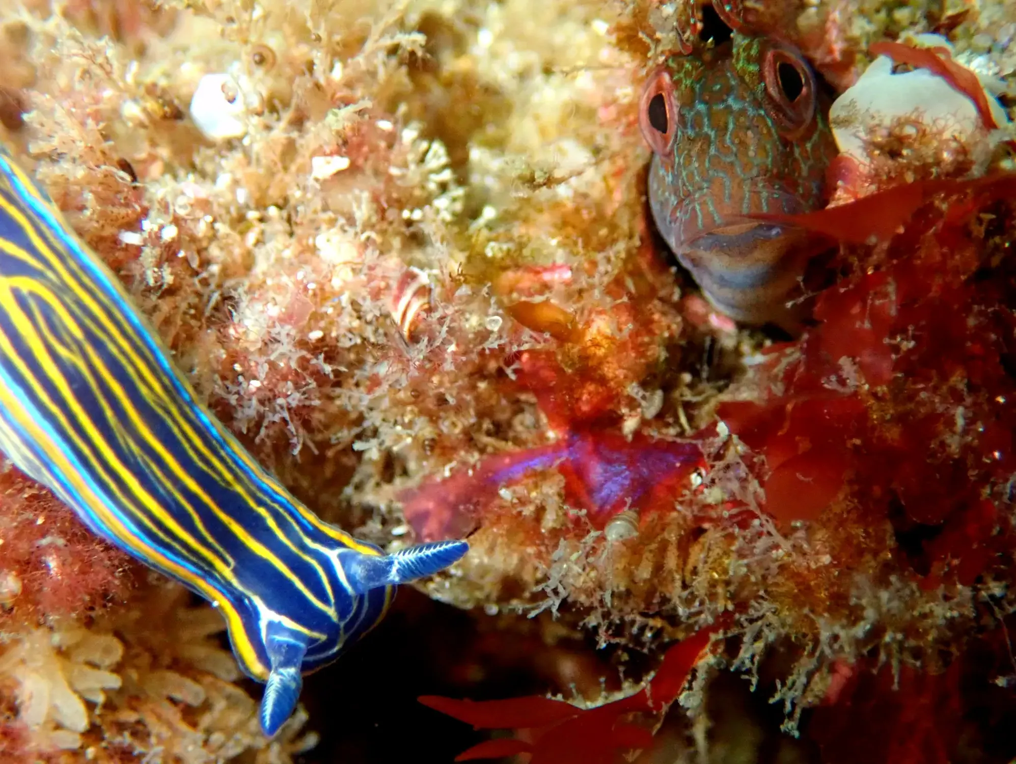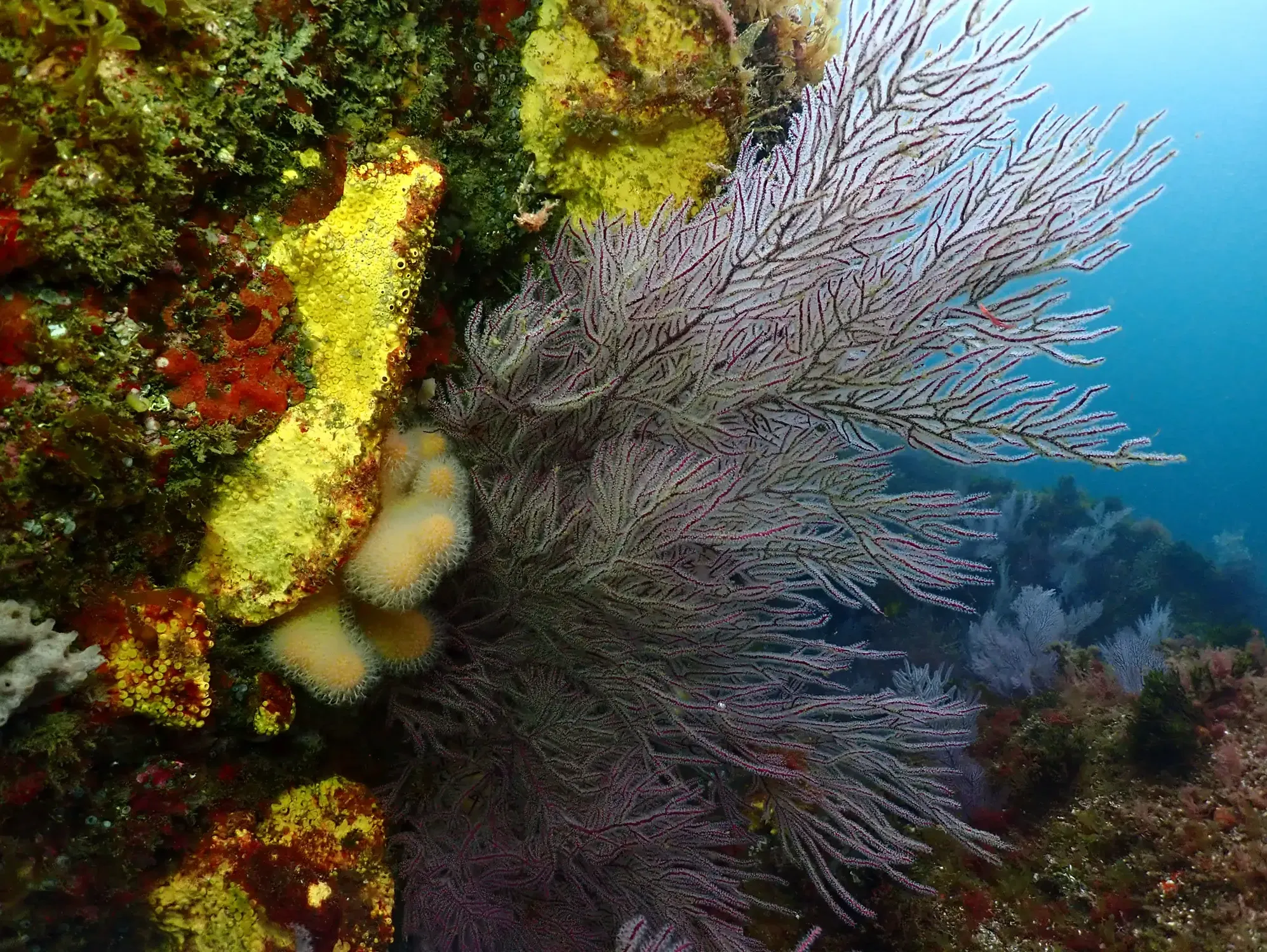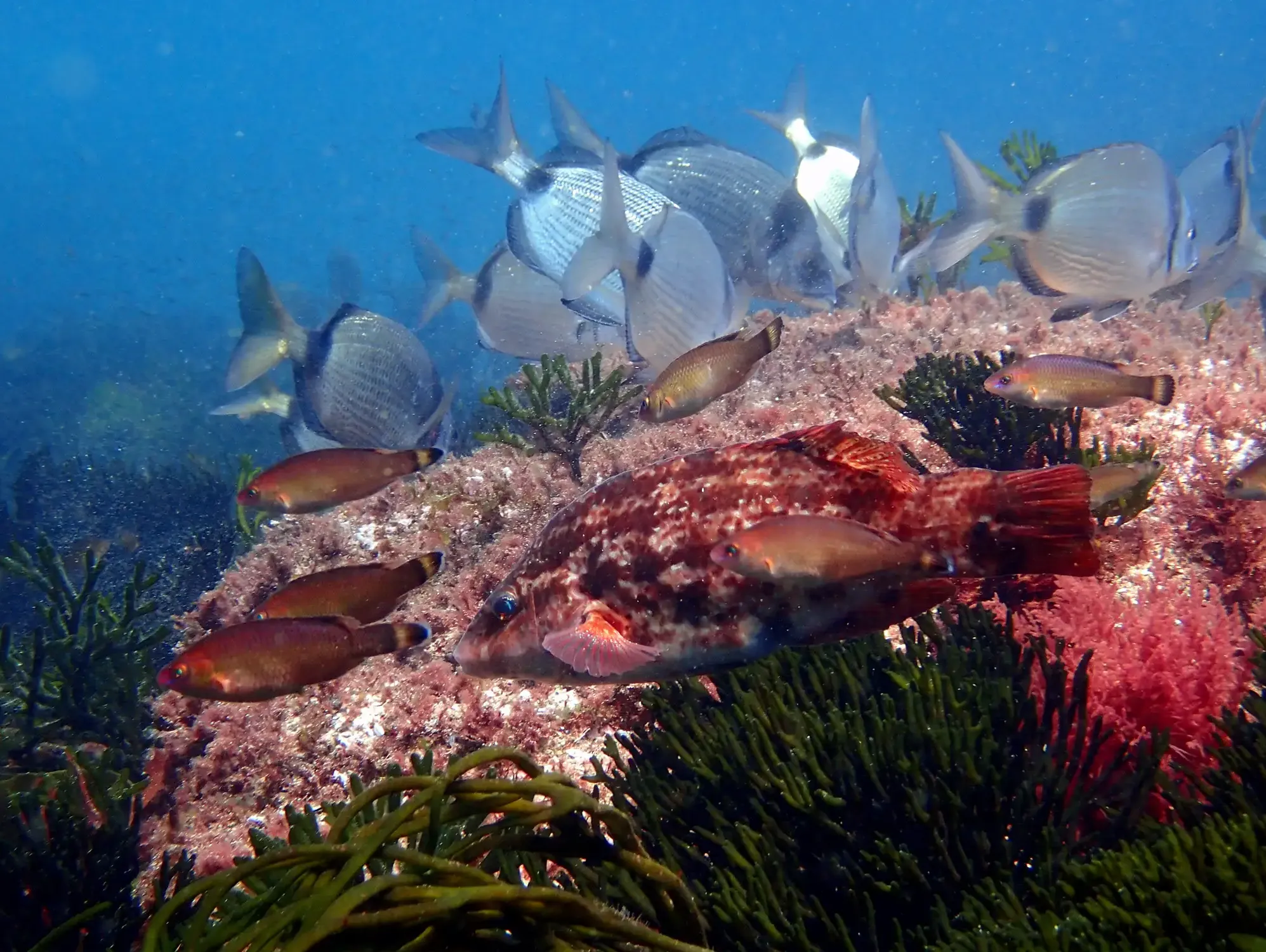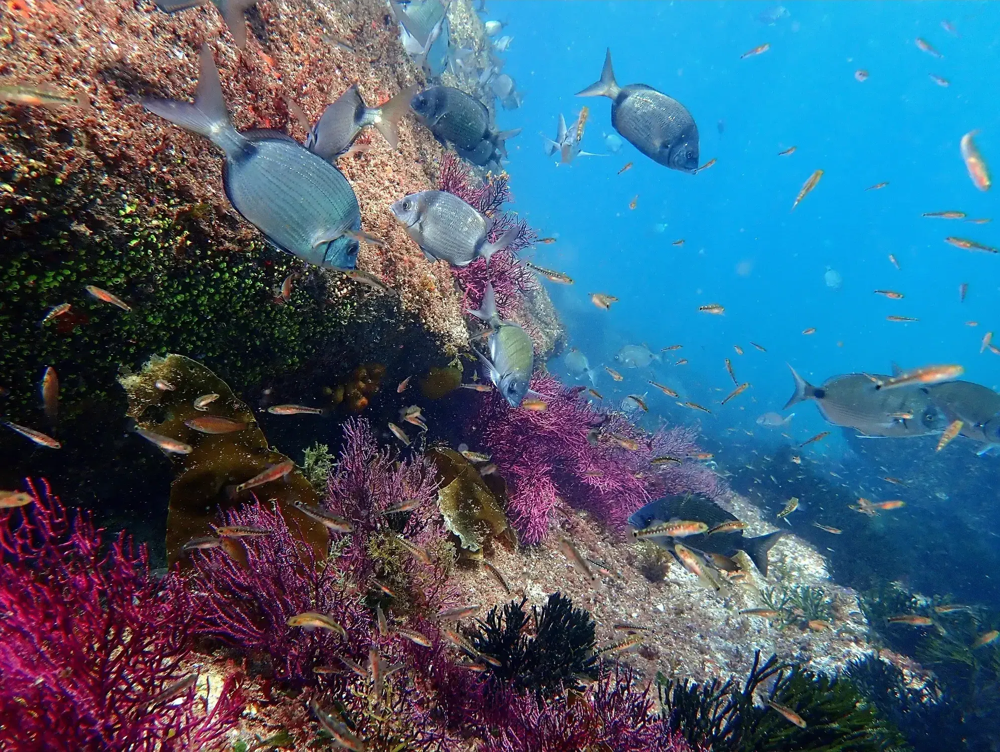 Sen dúbida, os lugares máis visitados polas mergulladoras, xa que acollen unha enorme cantidade de vida. As rochas son o sitio ideal para que as algas e animais sesis (aqueles que viven aferrados a superficies duras) poidan instalarse, e nas aguas do Atlántico recóbrense de especies que apenas deixan ver a pedra que hai baixo elas. Isto é un reclamo alimenticio para numerosas e diversas formas de vida.