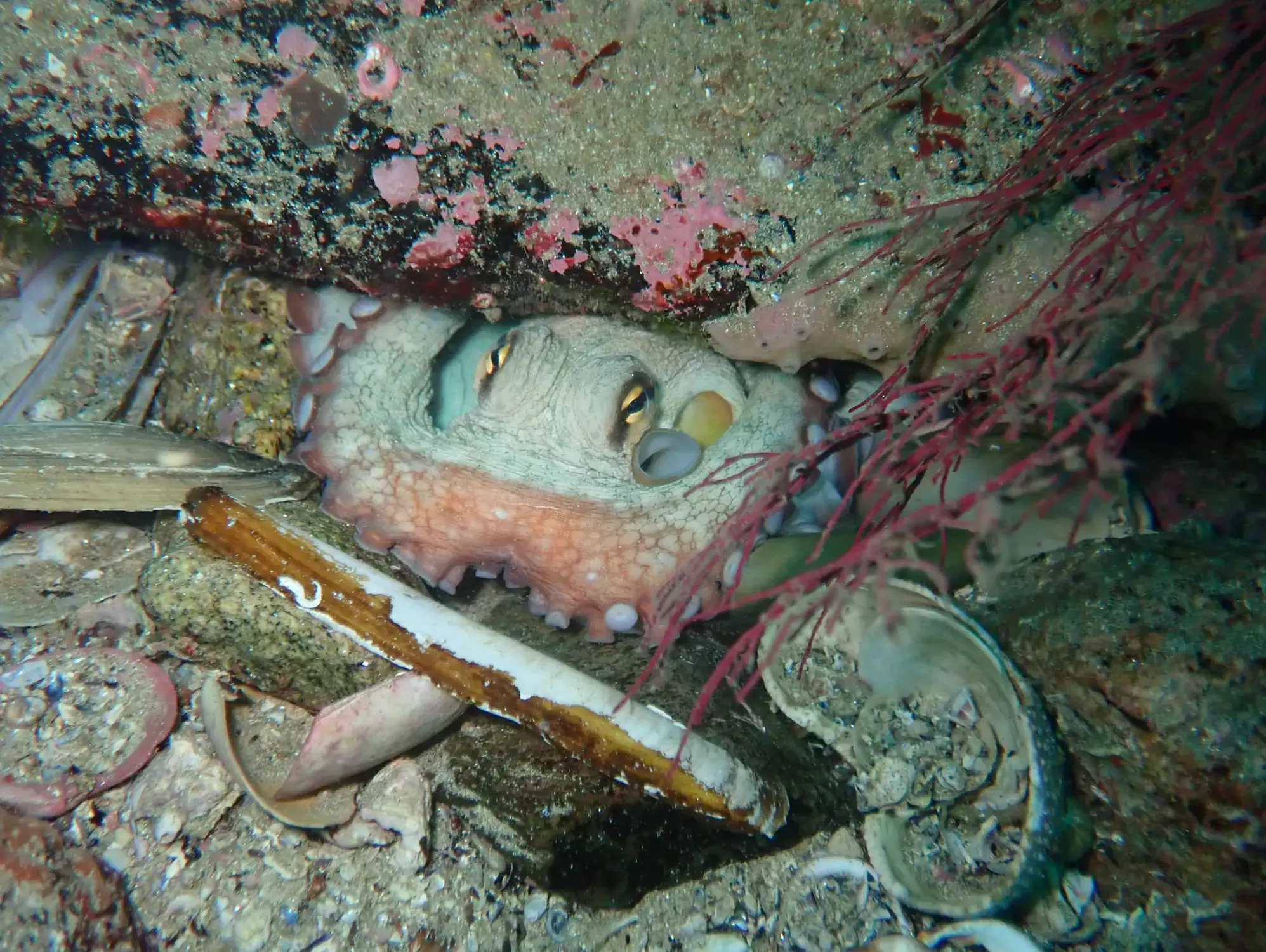 Ademais, a abundancia de recovecos e fendas que se forman actúan como un refuxio perfecto para animais de pequeno tamaño, como os peixes lapa, ata os de maior envergadura, coma congros, polbos, centolas ou lumbrigantes.